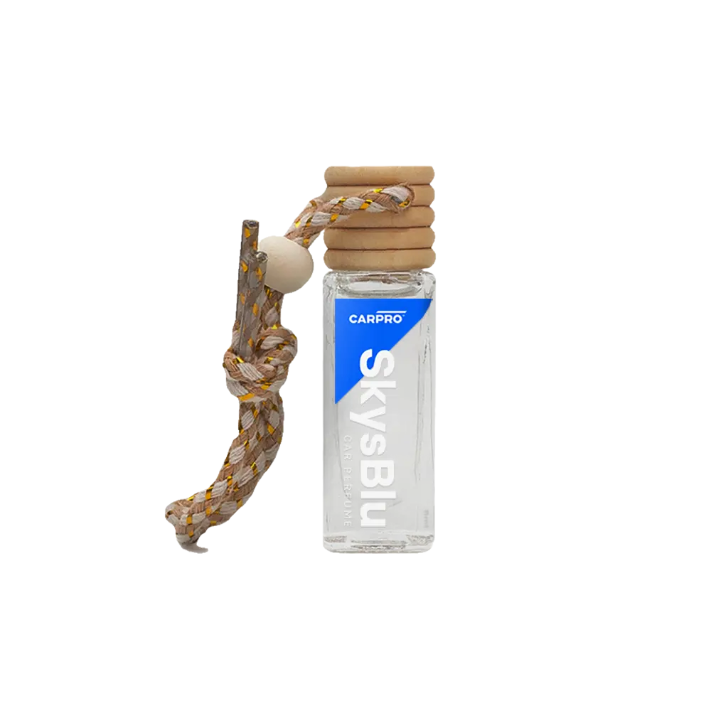 CARPRO SkysBlu pakub CARPRO Eraser’i tuttavat lõhna lihtsasti kasutatavas, kompaktses ja väga kauakestvas minipudelis. Sa lihtsalt riputad SkysBlu tahavaatepeegli külge, kinnitad selle ventilatsiooniava külge või kinnitad selle muul viisil, et see püsiks püsti. See on kõik… CARPRO SkysBlu parfüümil on puukorki all väike plastikplomm, mis tuleb toote aktiveerimiseks eemaldada. Seejärel lihtsalt keerake korgikork tagasi ja kinnitage, nagu mainitud, ning nautige mitu kuud värsket õhku! SkysBlu on hüpoallergeenne, pakub väga peent värsket lõhna ja tuleb atraktiivses klaasist parfüümipudelis!